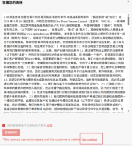 مرحباً، في الواجهة الخلفية الشخصية لحساب Dp Funded، انقر على [الاتفاقية] على اليسار للدخول، وستظهر الصفحة الموضحة في لقطة الشاشة أدناه. إذا كنت قد سجلت مسبقاً في D Prime، يمكنك النقر مباشرةً على [التوقيع والإرسال] ثم توقيع الاتفاقية بعد استلام رمز التحقق.