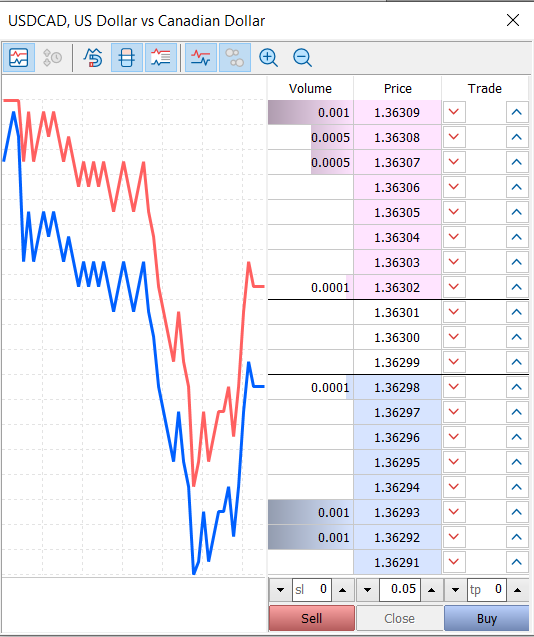 نظرًا لأنه يمكن ربط MT5 مباشرة بالبورصة في الموقع ، يمكن عرض عمق السوق لمنتجات التداول على MT5 ، وهي وظيفة مهمة تميز MT5 عن MT4 ، ويمكن لـ MT5 استخدام عمق السوق للأوامر المعلقة: