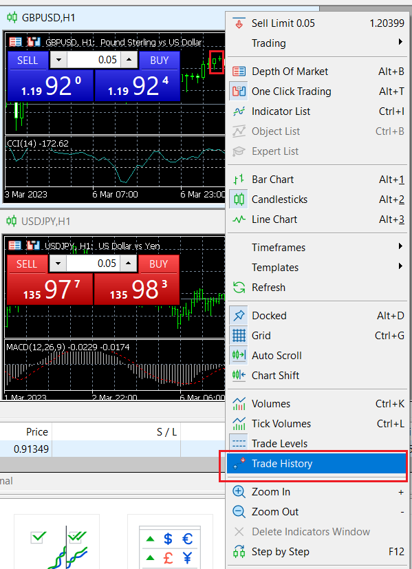 إذا لم تكن بحاجة إلى هذه الوظيفة ، يمكنك إغلاقها بالطريقة التالية: حرك الماوس فوق المساحة الفارغة من الرسم البياني ، وانقر بزر الماوس الأيمن ، وقم بإزالة [سجل التداول] المحدد: