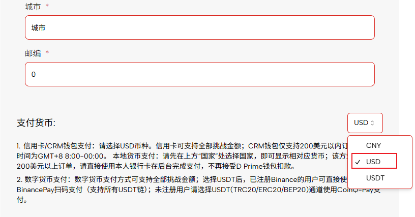 - On the payment page "nation" Select the country and state of the currency you wish to pay in and Payment Currency Select the corresponding currency from the drop-down menu (e.g.CNY).