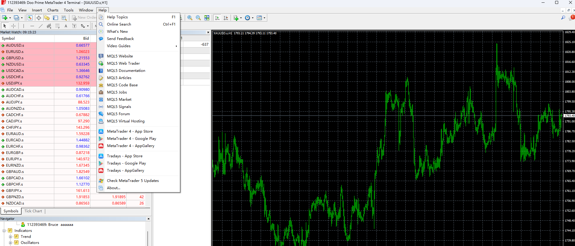 1. After you log in to MT4, click "Help" on the top menu bar and select "About".