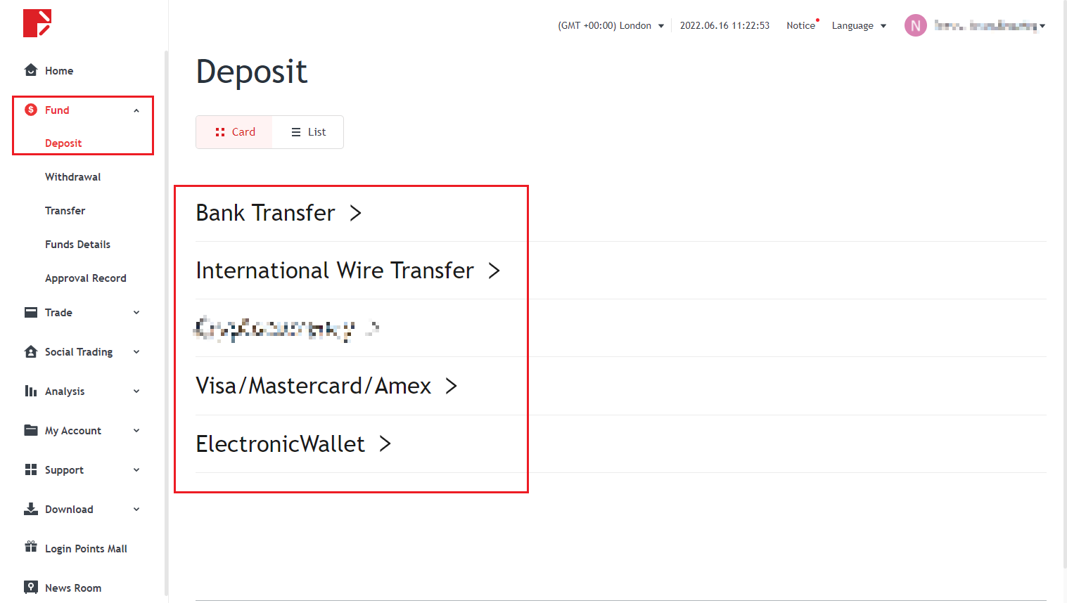 해당 입금 채널의 인터페이스로 이동하여 지침에 따라 입금합니다.