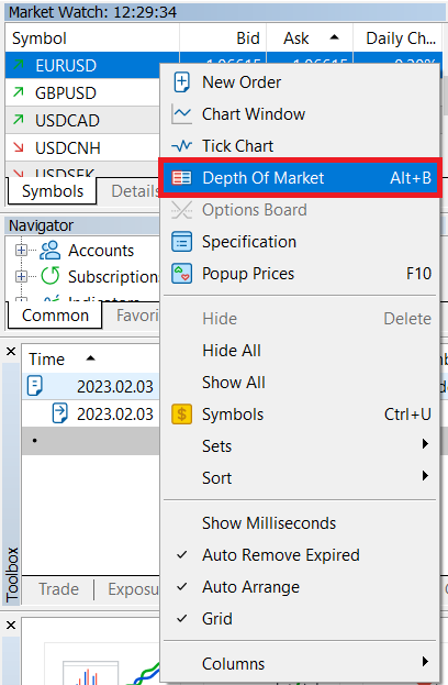 3.5 MT5에서 시장 심도를 사용하여 주문하는 방법