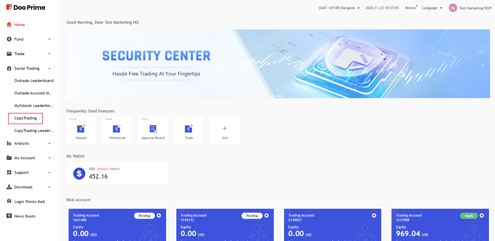 1. Você pode optar por fazer login no CopyTrading através da barra de menu à esquerda do Doo Prime User Center.
