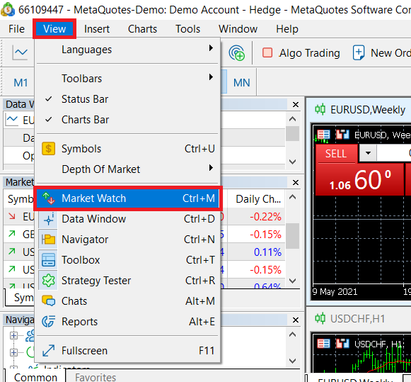 Se a janela de cotação de mercado não for exibida, primeiro você precisa clicar em [Exibir] na barra de menu e, em seguida, selecionar [Cotação de mercado]