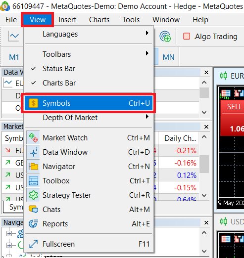 2. Selecione [Exibir] na barra de menu e clique em [Símbolo de negociação]: