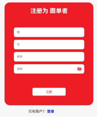 第二步: 填写 姓氏,名字,邮件以及密码 并点击 【注册】。