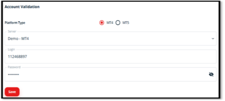 第四步:填写第一个所要绑定的MT账户的服务器,ID以及密码。