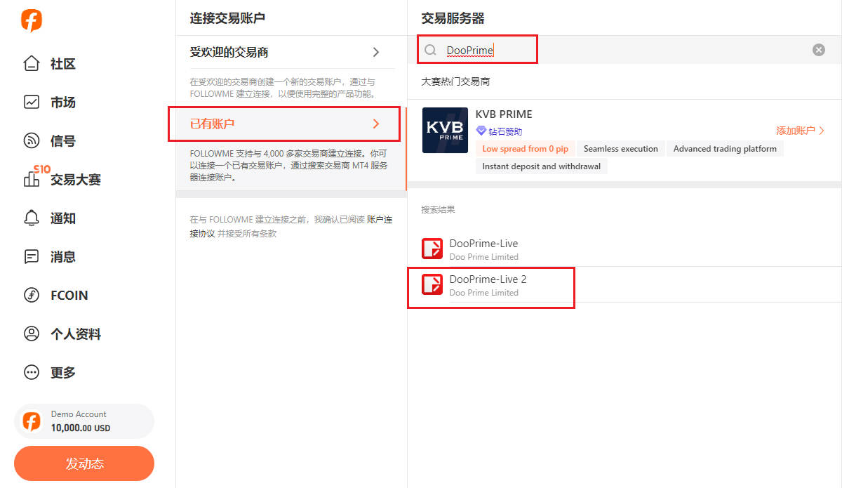 如何通过 FOLLOWME 连接 D Prime 交易账户?