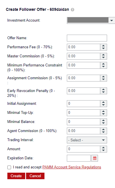 要成为跟随者账户持有人,用户需要接受来自PAMM账户之一的大师提供,如果他们的“客户账户”中有足够的资金。当他们接受报价时,他们请求将资金从“客户账户”移至“跟随者账户”。