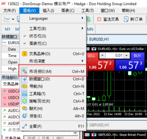 1. 在市场报价的窗口下直接添加相关交易品种的代码: