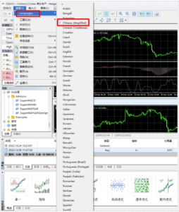 安装MT5时,语言自动默认为英语。若要切换成中文,需点击菜单栏中的【查看】,选择【Languages】,然后选择【Chinese (Simplified)】即可。