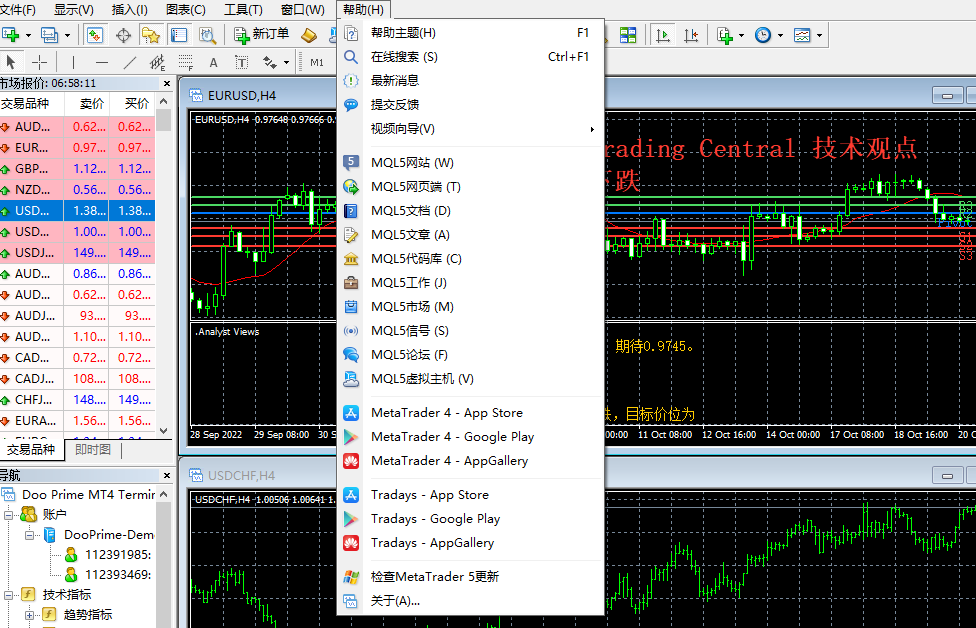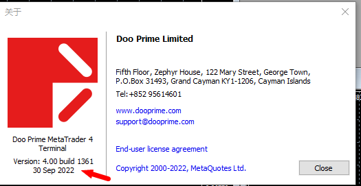 1.请您登录 MT4 后在顶部菜单栏点击「帮助」后选择「关于」。