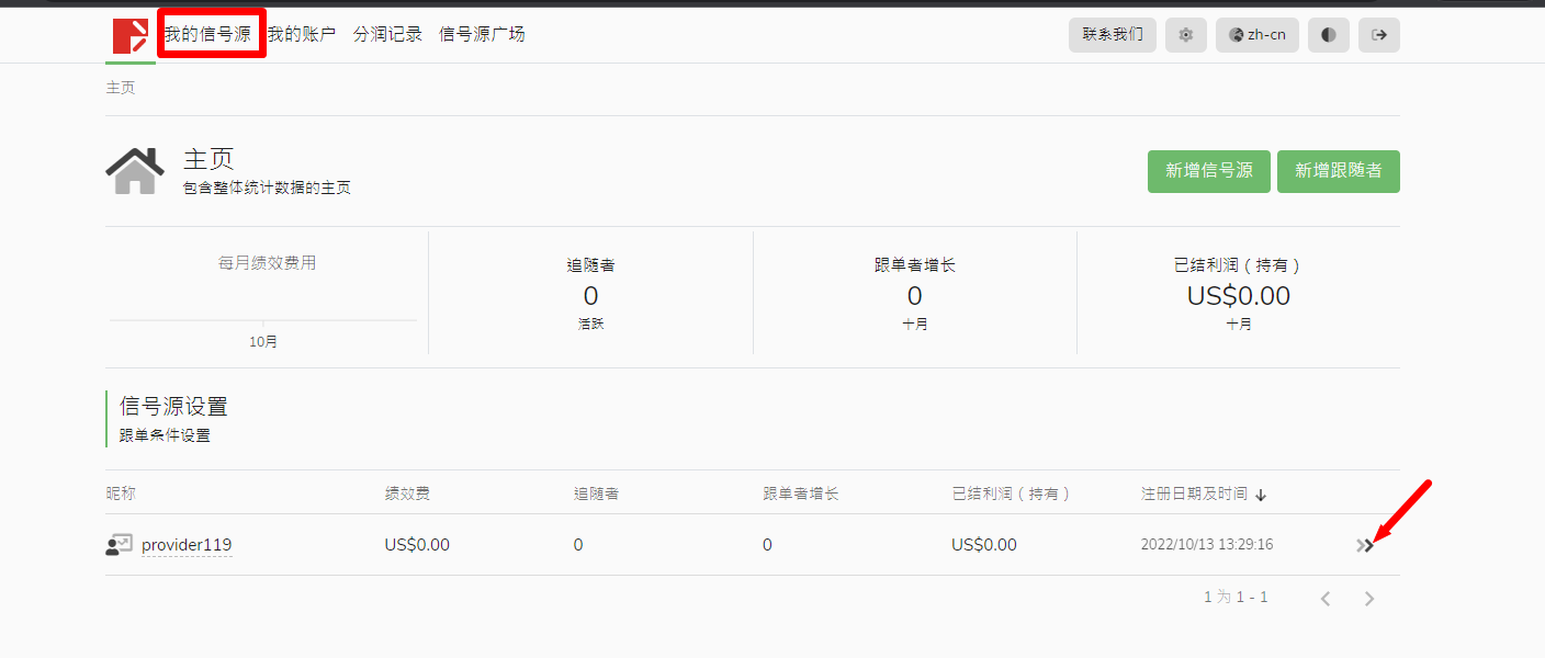 1. 在「我的信號源」欄目下,點擊想要歸檔的信號策略。