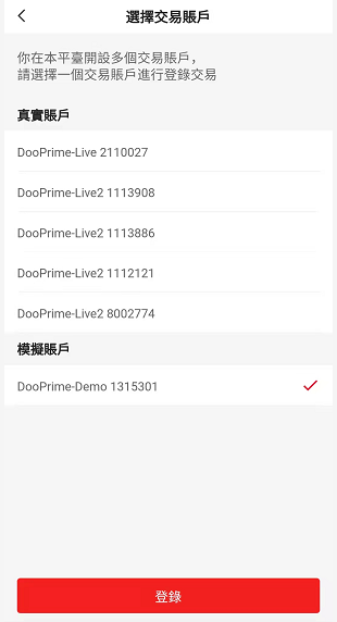 註冊完成後會有相關通知,您可回到登入頁面重新登入即可體驗D Prime InTrade。