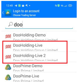 在選擇交易商的頁面輸入「DooPrime-live」 或「DooPrime-live2」,選擇實盤服務器「DooPrime-Live 2」。 (Doo Prime 是使用正版MetaTrader 4 軟件的正規經紀商,如果是使用盜版軟件的虛假經紀商,此處將搜索不到服務器。)