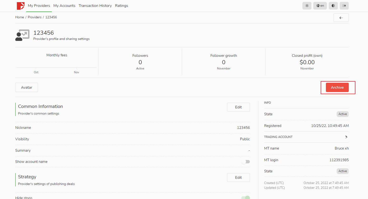 1. Trong tab "Nguồn của tôi", hãy nhấp vào chiến lược tín hiệu mà bạn muốn lưu trữ.