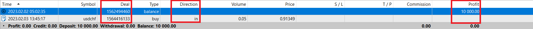 Việc mở và đóng một lệnh được hiển thị riêng biệt theo vào và ra, trong có nghĩa là mở một vị trí, ngoài có nghĩa là đóng một vị trí và chỉ lệnh đóng ngoài mới hiển thị số tiền lãi và lỗ;